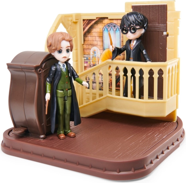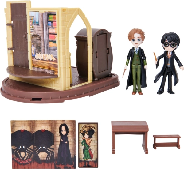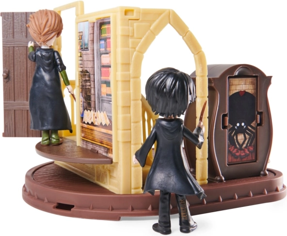 Táto úžasná herná sada inšpirovaná svetom Harryho Pottera prináša deťom možnosť zažiť mágiu zblízka. Sada obsahuje 7,6 cm vysoké figúrky, ktoré deťom umožňujú hrať sa na obľúbené scény. Stačí stlačiť bočnú stranu skrine a objaví sa bubák, čo činní hru viac interaktívnou. Otočný panel a otvárateľné dvere predstavujú ďalšie prvky, ktoré podnecujú detskú fantáziu.