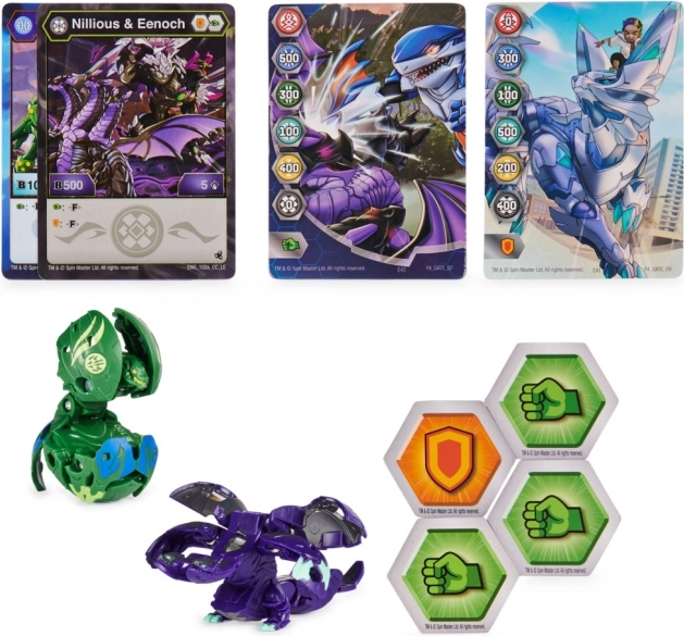 Štýlový plechový box v novom dizajne, ktorý pojme až 6 Bakuganov, 2 balíčky 40 kariet a 12 Baku-žetónov. Balenie obsahuje 1 plechový box s vekom, 1 exkluzívneho Bakugana, 1 tajomného Bakugana, 4 Baku-žetóny, 2 karty charakteru, 2 Gate karty. Vhodné od 6 rokov.