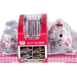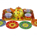 Kanvička, hrnčeky, podšálky, taniere a tácka – všetko, čo deti potrebujú k perfektnému čajovému posedeniu s kamarátmi.