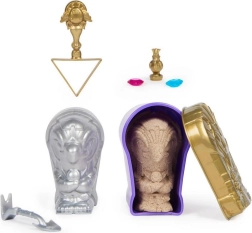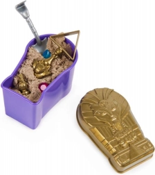 Objavujte tajomstvá starovekého Egypta s Kinetic Sand mini sadou Múmia – vo vrstvách kinetického piesku čakajú poklady, skryté prekvapenia a jedna z troch postáv na objavenie; nechýba ani šanca uloviť zlatú mincu a hrať sa s priloženými nástrojmi a formami.