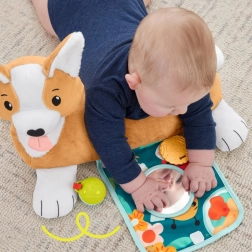 Podložka na bruško v tvare rozkošného psíka ponúka deťom tri rôzne spôsoby hrania a rozvoja. Ideálne pre hru na brušku, hru v sede a hru s fantáziou. Súčasťou podložky je šuštivý panel a 3 interaktívne hračky, ktoré pomáhajú rozvíjať motorické zručnosti a stimulujú zmysly zraku, sluchu a hmatu.