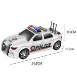 Policajné terénne auto s prívesom na koňa so svetlami a zvukmi
