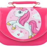 Táto ružová kabelka s roztomilým jednorožcom je perfektným doplnkom na každodenné nosenie aj špeciálne príležitosti. Lesklý povrch, zlaté kovové detaily a hravá potlač z nej robia štýlový kúsok, ktorý deti milujú.