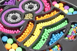 Múdry tácek v tvare sovičky s oddelenými priehradkami uľahčuje výber korálikov a udržiava pracovnú plochu čistú.