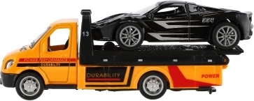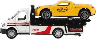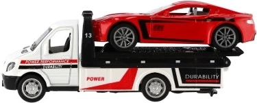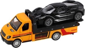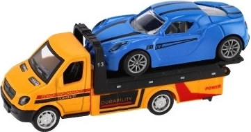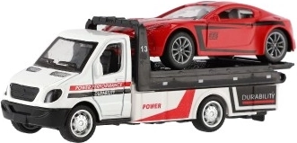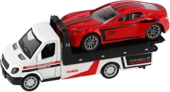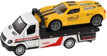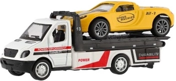 Malé, ale výkonné odťahové vozidlo s autíčkom poteší každého malého vodiča. Vďaka mechanizmu na spätný chod sa vozidlá svižne rozbehnú, kovovo–plastové prevedenie zaručuje odolnosť a detailné spracovanie a kompaktný rozmer 11 cm je ideálny na hranie doma aj na cestách.