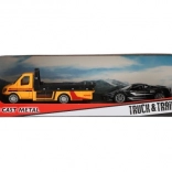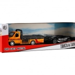 Odťahové vozidlo s autíčkom 11 cm na spätný chod, kov/plast, v darčekovej krabičke