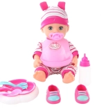 Roztomilé bábätko s veľkosťou 30 cm prináša hodiny zábavy a starostlivosti. Po vložení batérií vydáva realistické zvuky a vďaka čuracej funkcii umožňuje deťom napodobniť skutočnú starostlivosť o bábätko. Súčasťou balenia sú praktické doplnky ako topánočky, podbradník, fľaštička a tanierik – ideálne na fantazijné hranie a rozvoj jemnej motoriky.