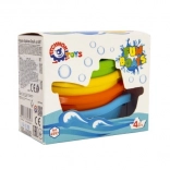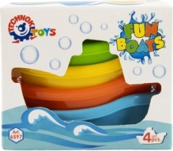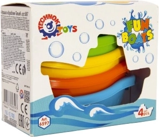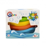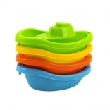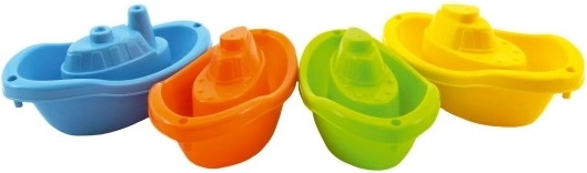 Sada obsahuje štyri lodičky v žiarivých farbách – modré, oranžové, zelené a žlté, ktoré možno jednoducho stohovať pre jednoduché uloženie. Tvar a farby lodí podporujú detskú predstavivosť a kreativitu počas vodnej zábavy.