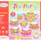 Navrhni a vyfarbi si svoj vlastný keramický čajový set. Obsahuje kanvičku, hrnčeky s podšálky, džbánik a cukorničku, s farbičkami a štetcom. Ideálne pre kreatívne deti od 5 rokov.