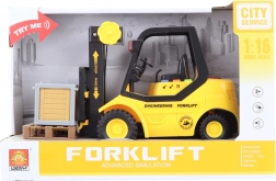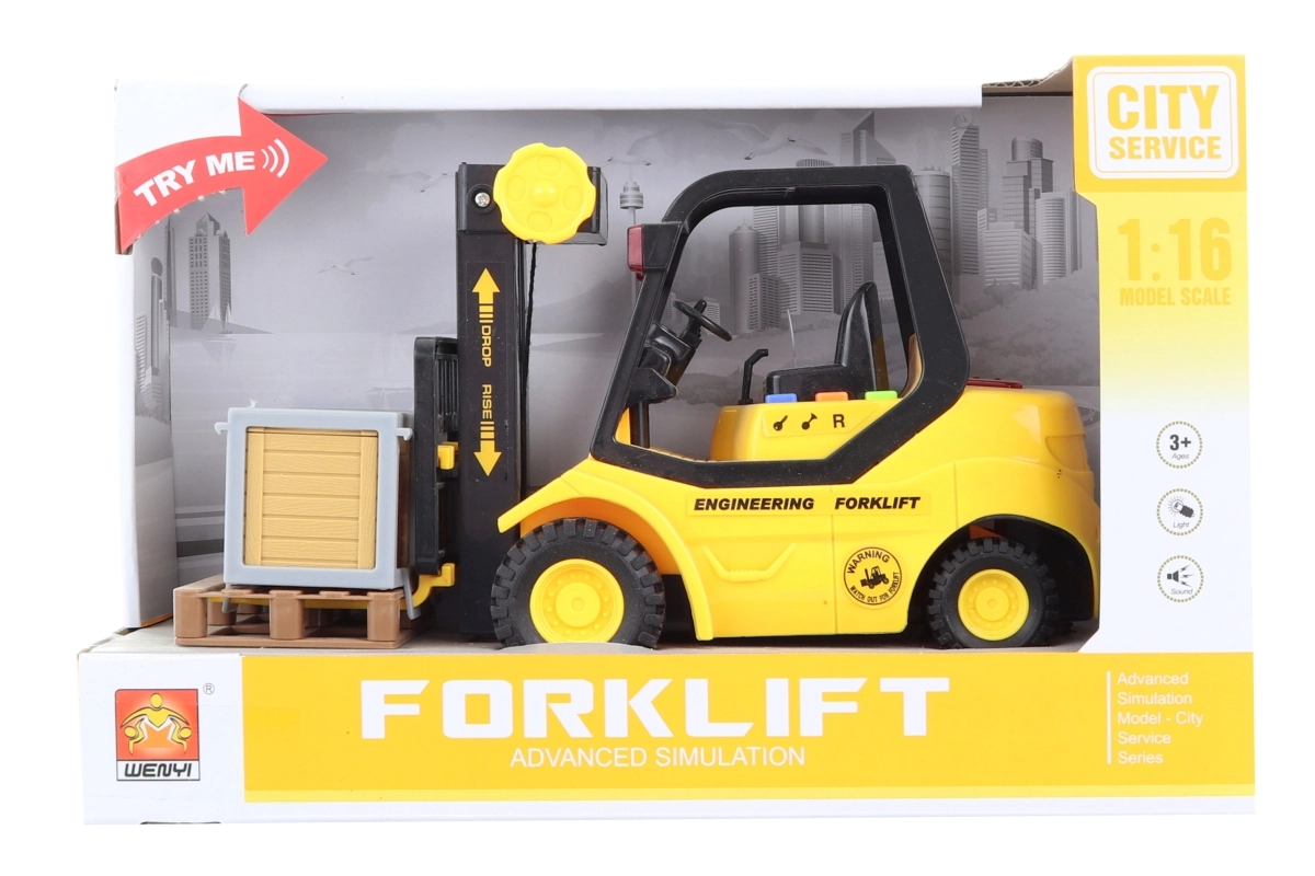Zábavný a realistický vysokozdvižný vozík na batérie v mierke 1:16 poteší každého malého vodiča. Po stlačení tlačidla svieti a vydáva zvuky, batérie AG13/LR44 sú súčasťou balenia. Vhodné pre deti od 3 rokov.