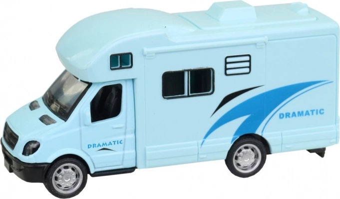 Odolné kovové prevedenie s realistickými oknami, potlačami a strešnými prvkami pre vernú hru na cestovanie a kempovanie.