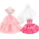 Dve rôzne sady šiat, každá s vlastnými detailmi, ktoré dodajú každej bábike výnimočný vzhľad.