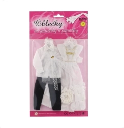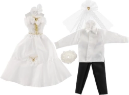 S touto jedinečnou sadou svadobného oblečenia sa vaše bábiky môžu stať hviezdami každej imaginárnej svadby! Obleky zahŕňajú detailne prepracované šaty a elegantný oblek, ktoré dodajú vášmu svadobnému príbehu kúzlo a žiarivosť.