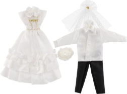 Táto sada ponúka realistické svadobné obleky vrátane čipkovaných a volánových detailov, ktoré dotvárajú vzhľad skutočnej svadby.