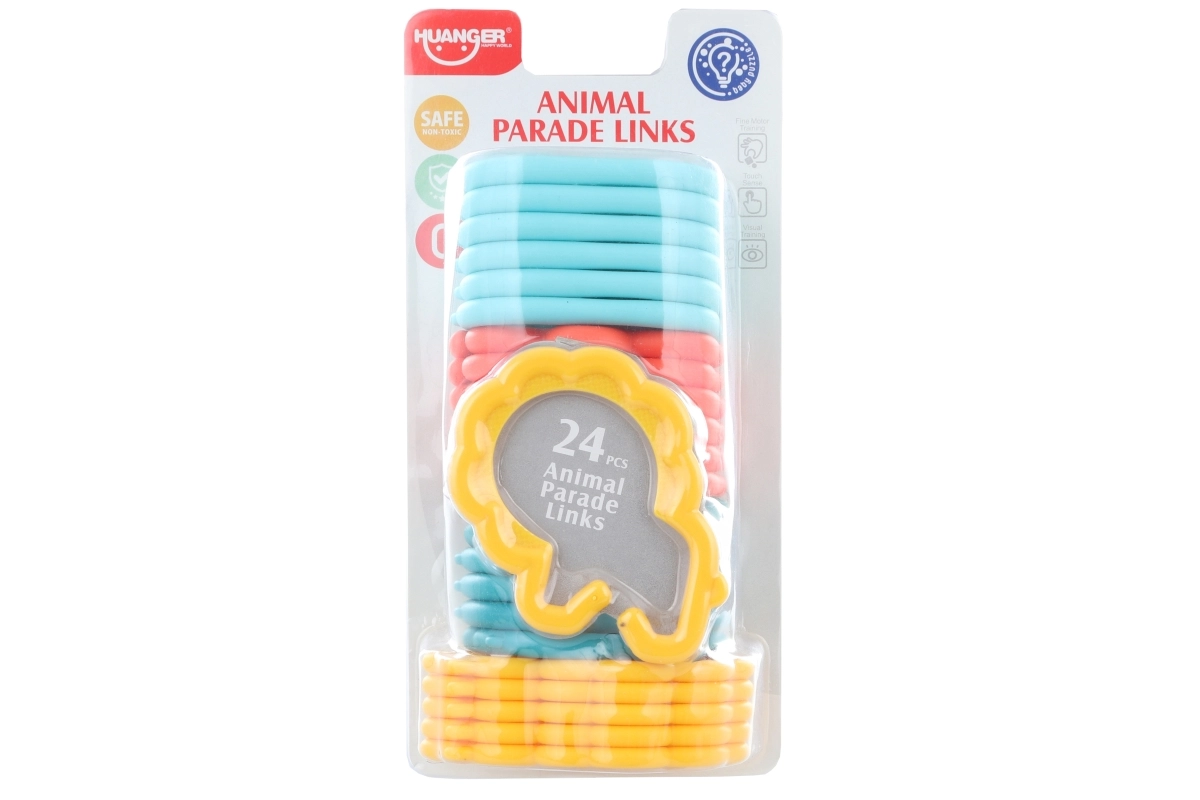 Zábavný a praktický doplnok pre najmenších: plastový prepojovací reťaz s motívmi zvieratiek. Ideálny na kočík, autosedačku či postieľku. Balenie obsahuje 24 dielikov na jednoduché spájanie a kreatívne hranie. Vhodné od 0+, vyrobené z odolného plastu a skvelé pre rozvoj jemnej motoriky a zmyslového vnímania.