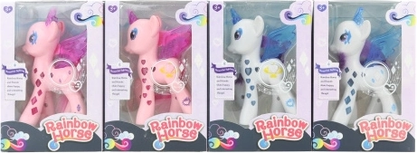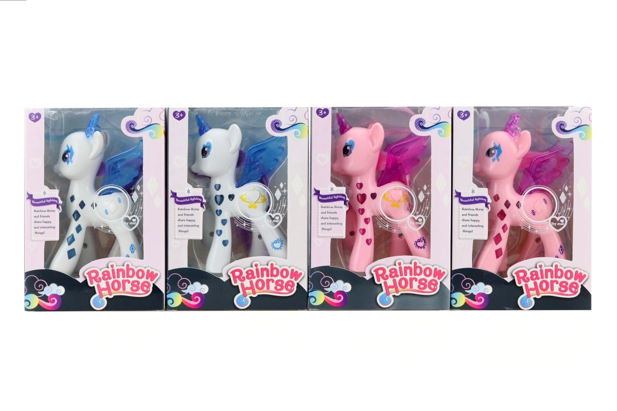 Roztomilý plastový koník, ktorý po stlačení svieti, poteší každé dieťa od 3 rokov. Súčasťou balenia sú 3 batérie AG13, takže sa môžete hrať hneď. Kompaktné rozmery a bezpečné prevedenie sa hodia domov aj na cesty.