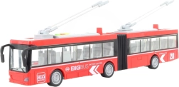 Červený kĺbový trolejbus je dokonalým doplnkom pre každého malého milovníka dopravných prostriedkov. Zaujme svojou dĺžkou 44,3 cm a detailným vyhotovením, ktoré verne napodobňuje skutočné vozidlá.