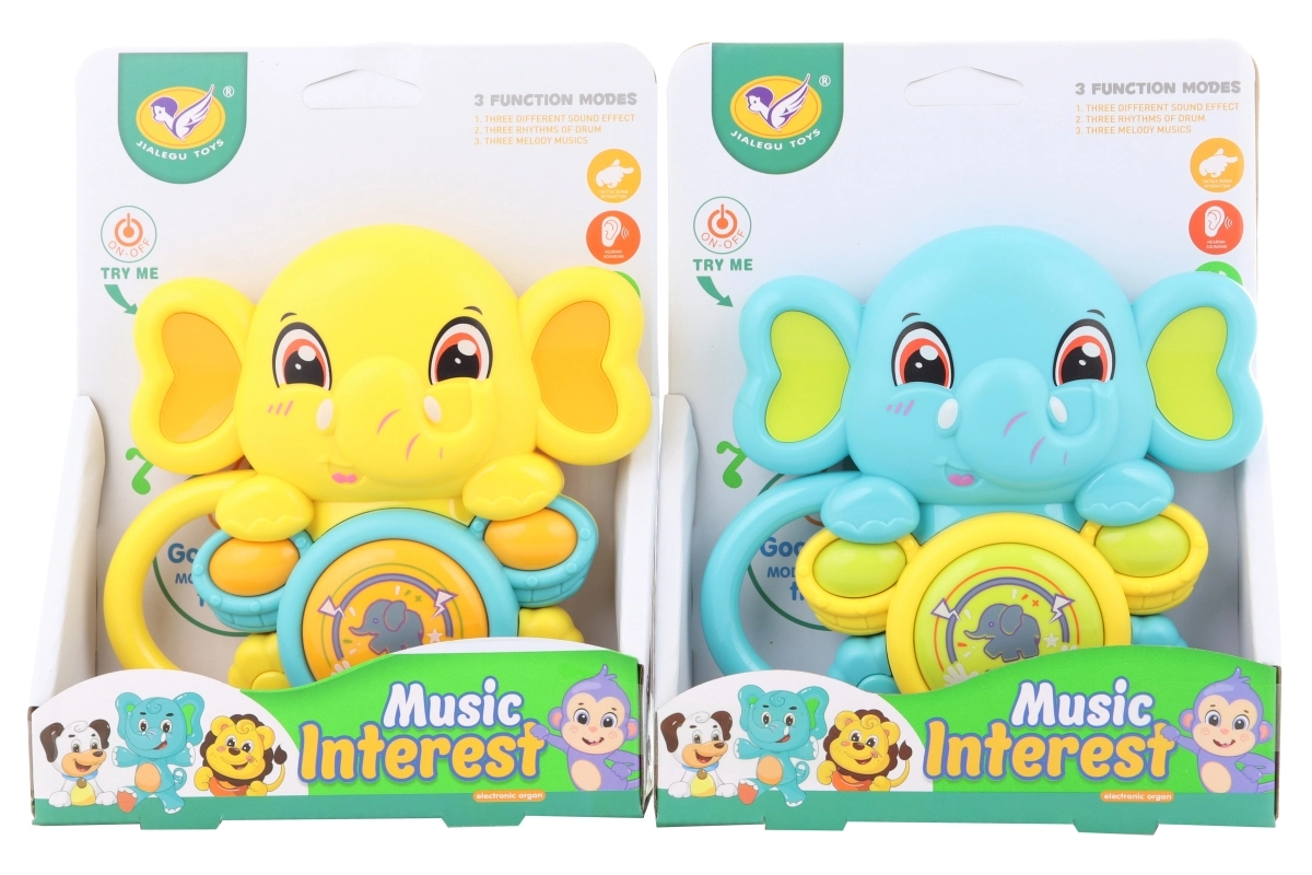 Roztomilé sloníča pre najmenších poteší každé dieťatko. Po stlačení bubna prehrá 9 melódií a zvukov, rozvíja sluchové vnímanie a podporuje jemnú motoriku. Hračka je kompaktná, ľahko sa drží a je pripravená na použitie – batérie sú súčasťou balenia.