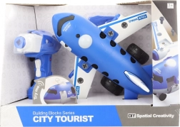 Lietadlo v modro-bielej farebnej kombinácii je navrhnuté z odolného plastu a má realistické detaily, ako sú okienka, podvozok a krídla. Balenie obsahuje skrutkovač aj detskú vŕtačku, ktorá slúži ako na montáž, tak aj ako pohonný modul. Zostavený model má rozmery približne 26 × 25 × 14 cm a je akurát do detských rúk.