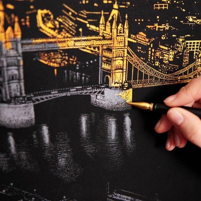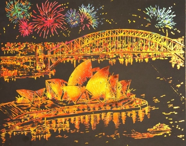 Objavte čaro škrabacej techniky: pod čiernou vrstvou sa ukrýva zlatý podklad, ktorý z každého vyškrabaného ťahu vytvorí kontrastný, elegantný efekt. Motív ikonickej Opery v Sydney v nočnom prevedení poteší začiatočníkov aj pokročilých a výsledný obrázok sa stane originálnou dekoráciou.