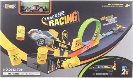 Vystreľovacia dráha s kovovým autíčkom. Dĺžka dráhy cca 125 cm. Rozmery balenia cca 38 × 22 × 6 cm. Vek 3+
