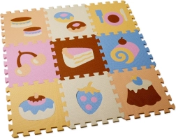 Vytvorte deťom bezpečný a hravý kútik s farebným penovým puzzle s motívom dobrôt. Jednotlivé diely sa do seba ľahko zacvakávajú, možno ich ľubovoľne rozširovať a kombinovať. Podložka je mäkká, príjemná na dotyk a šetrná k podlahe.