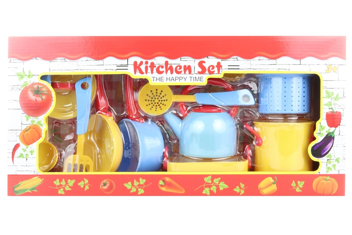 Herná kuchynka bude s touto sadou ešte zábavnejšia. Sada plastového riadu obsahuje kanvicu, hrniec, sito, rajnicu, panvicu, pokrievku a ďalšie doplnky – všetko, čo malí kuchári potrebujú na svoje prvé recepty. Ideálne na detské hry na varenie, rozvíja fantáziu a jemnú motoriku. Ľahký plast, bezpečné prevedenie pre deti a bohaté príslušenstvo poteší každého malého kuchára.