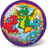 Veselé ilustrácie drakov v žiarivých farbách motivujú deti k pohybu a hre a zároveň robia z lopty obľúbený doplnok na ihrisko.