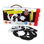 Sada Alexander Kontrasty prináša jednoduchú a účinnú vizuálnu stimuláciu pre najmenších. V období okolo 3. mesiaca bábätká najlepšie vnímajú vysoký kontrast a ostré línie, ktoré napomáhajú rozvoju zrakovej ostrosti aj sústredenia. Pevné kartičky s výraznými motívmi (tvary, zvieratká, symboly) upútajú pozornosť a podporujú prvé zrakové sledovanie.