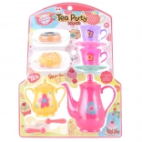 Zábavný plastový čajový servis pre malých hostiteľov a hostiteľky prináša všetko, čo je potrebné na dokonalé hranie na čajový dýchánok. Súprava obsahuje kanvicu, cukorničku, dve šálky s podšálkami, dva tácky s dezertmi, vidličku a lyžičku. Ideálne pre deti od 3 rokov a rozvoj fantázie a spoločenských hier.