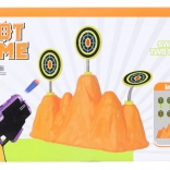 Stojan s viacerými terčmi ponúka rôzne úrovne náročnosti a možnosť hrať na čas alebo na počet zásahov. Vďaka kompaktným rozmerom sa hra hodí do detskej izby, na záhradu aj na cesty.