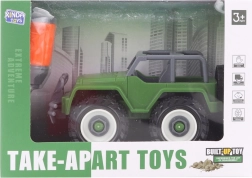 Zábavná stavebnica pre malých technikov: skrutkovací plastový jeep s dĺžkou 11 cm sa ľahko skladá aj rozkladá pomocou priloženého skrutkovača. Podporuje jemnú motoriku, logické myslenie a kreatívnu hru detí od 3 rokov.