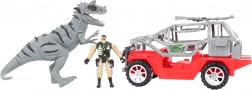 Táto sada obsahuje sivého dinosaura, terénne auto a figúrku v armádnom oblečení pre ultimátny herný zážitok.