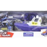 Užite si hodiny zábavy s policajnou sadou, ktorá obsahuje motorový čln, helikoptéru a nafukovací čln.