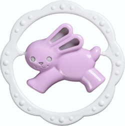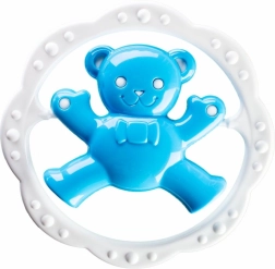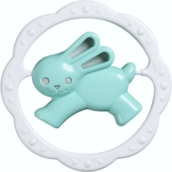 Pestrofarebná detská hrkálka s hryzadlom v tvare kruhu a motívom medvedíka alebo zajačika pomáha upokojiť ďasná pri prerezávaní zúbkov a zároveň rozvíja jemnú motoriku a zrakové vnímanie. Kompaktné a ľahké prevedenie je ideálne pre malé detské rúčky.