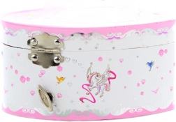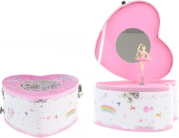 Elegantná srdcová šperkovnica s hracím strojčekom poteší každú milovníčku rozkošných doplnkov. Po natiahnutí kľúča sa vo vnútri roztočí baletka a zaznie melódia. Vo vnútri nájdete zrkadielko a priestor na drobné poklady. Romantický dizajn, tancujúca baletka a praktické uloženie šperkov v jednom.
