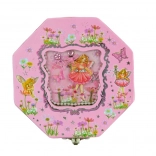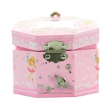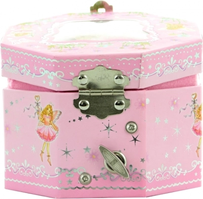 Táto pôvabná hudobná šperkovnica v ružovom prevedení s rozprávkovými motívmi je perfektným miestom na uloženie prstienkov, náušníc a ďalších drobností. Po otočení kľúčika sa baletka ladne otáča pred zrkadielkom a skrinka prehrá nežnú melódiu.
