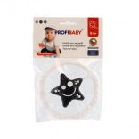 Textúrované okraje fungujú ako jemné hryzátko na upokojenie podráždených ďasien. Kontrastný motív hviezdy/kvetu uprostred zaujme aj veľmi malé deti, ktoré ešte trénujú zaostrovanie. Hračka je vyrobená z kvalitného plastu a je vhodná na každodenné používanie doma aj na cestách.