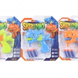Zábavná plastová pištoľka v tvare dinosaura, ktorá strieľa penové náboje s prísavkou. Ideálna na bezpečnú hru doma aj vonku. Balenie obsahuje pištoľ a 3 penové náboje s prísavkou. Jednoduché ovládanie, ľahká konštrukcia a bezpečná zábava pre deti od 6 rokov.