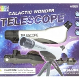 Objavte nočnú oblohu s týmto plastovým detským teleskopom so stojanom, ktorý ponúka priemer objektívu 60 mm, zväčšenie 20×, 30× a 40× a jednoduché zaostrovanie na 170 mm. Ideálny pre začínajúcich astronómov od 8 rokov.