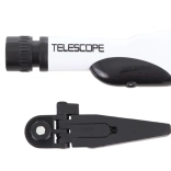 Tento ľahký a stabilný teleskop je skvelou voľbou na prvé pozorovanie Mesiaca, jasných planét a pozemských objektov. Vďaka priemeru objektívu 60 mm a variabilnému zväčšeniu 20×, 30× a 40× si deti ľahko vyskúšajú rôzne úrovne detailu a naučia sa základy astronómie.