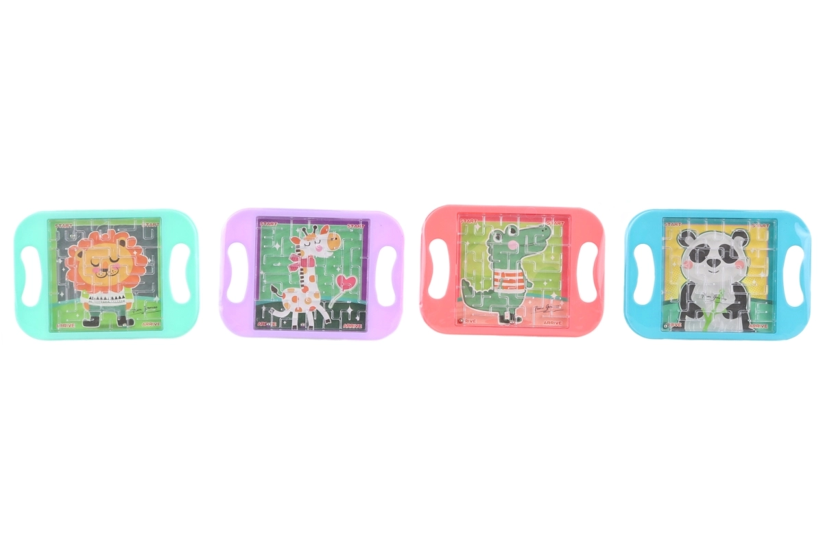 Plastové bludisko so zvieracím motívom je skvelou voľbou na tréning trpezlivosti a koordinácie oka a ruky. Dve kovové guličky vo vnútri labyrintu preveria šikovnosť detí, ktoré ich musia presne viesť správnymi cestami. Vďaka kompaktným rozmerom sa bludisko zmestí do vrecka či batohu a zabaví deti kedykoľvek a kdekoľvek.