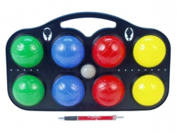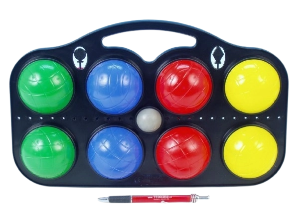 Sada ôsmich plastových gúľ na pétanque, ktoré sú ideálne pre zábavné vonkajšie aktivity. Každá guľa má unikátnu farbu pre jednoduchú identifikáciu pri hre. Táto sada je dodávaná v praktickom balení, ktoré uľahčuje ako uskladnenie, tak prenos školských gúľ.