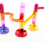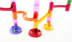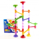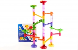 Stavebnica guľôčkovej dráhy ponúka pestré trubky, zákruty a šmýkačky, ktoré ľahko do seba zacvaknete a vytvoríte originálne trate. Vďaka 45 dielom poskladáte nízke aj viacposchodové zostavy a zakaždým zažijete iné preteky.
