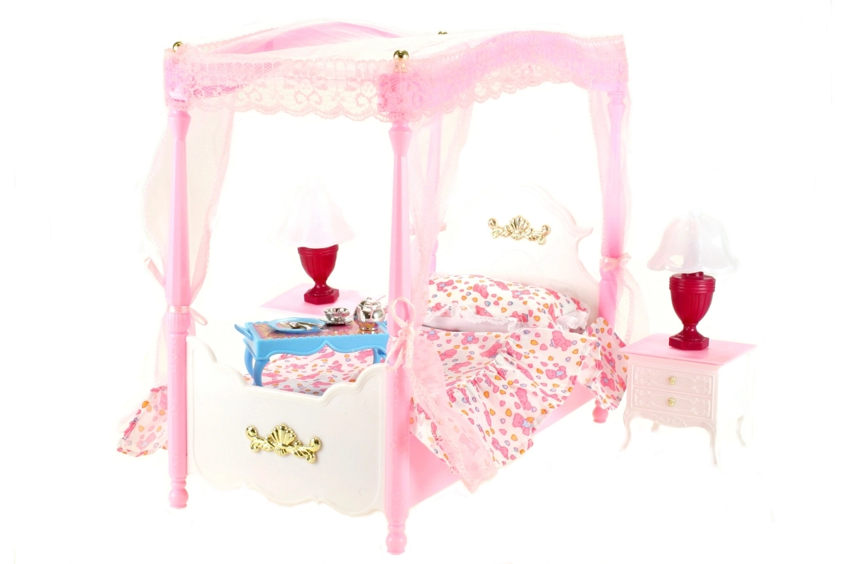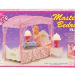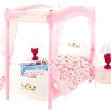 Táto detailne spracovaná posteľ s nebesami premení izbičku bábik na útulné kráľovstvo. Vďaka bohatému príslušenstvu a funkčným lampičkám si deti užijú množstvo realistických scenárov a zábavy. Kvalitné plastové prevedenie zaručuje odolnosť a jednoduchú údržbu.