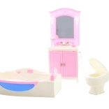 Obsah balenia zahŕňa toaletný stolík s umývadlom, vaňu a toaletu, rovnako ako malé doplnky, ktoré dotvárajú atmosféru skutočnej kúpeľne. Plastové prevedenie zaisťuje jednoduchú údržbu a dlhú životnosť pri každodennom hraní.