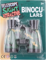Plastový maskáčový ďalekohľad s veľkosťou približne 13,5 × 12 × 5 cm. Rozmery balenia približne 17 × 22 × 5,5 cm. Vek 3+