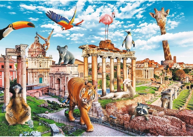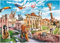 Originálna ilustrácia kombinuje rímske pamiatky a exotické zvieratá. Zábavný detailný obraz udrží pozornosť a skladanie si užije celá rodina.