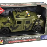 Realistické vojenské obrnené vozidlo na zotrvačník poteší každého malého veliteľa. Ponúka slovenské hlasové efekty, svetelné signály, zvuk streľby a otváracie dvere. Mierka 1:16, dĺžka 23–24 cm. Súčasťou sú batérie AG13. Vhodné od 3 rokov.