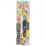Indiánska sada obsahuje 1× luk cca 50 cm, 3× šíp s obalom cca 26 cm, 1× nôž s obalom cca 20 cm. Vek 3+